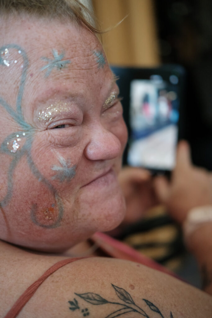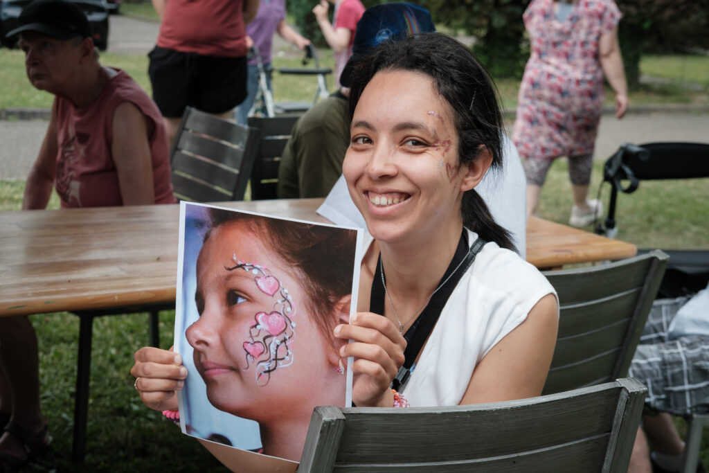 En parallèle, un atelier maquillage permettait à chacun de laisser parler sa créativité autrement. Couleurs vives, paillettes et pinceaux ont permis aux participants de se transformer le temps d’un instant. Les visages se sont illuminés, révélant des sourires complices et une joie communicative. Ce moment de détente et d’expression personnelle a été particulièrement apprécié par les résidents et les accompagnants.