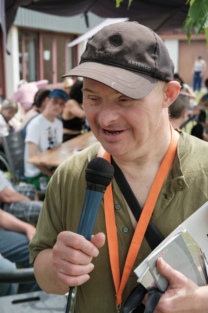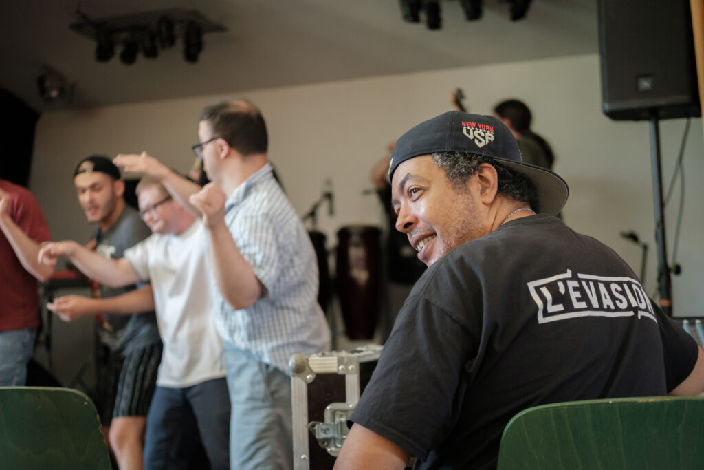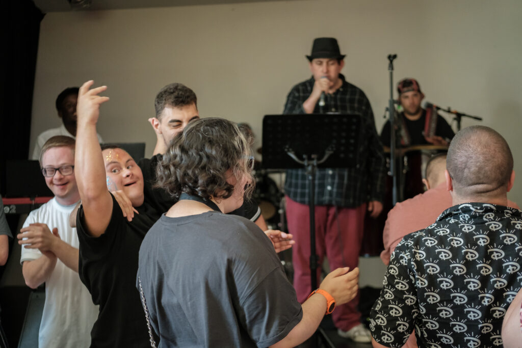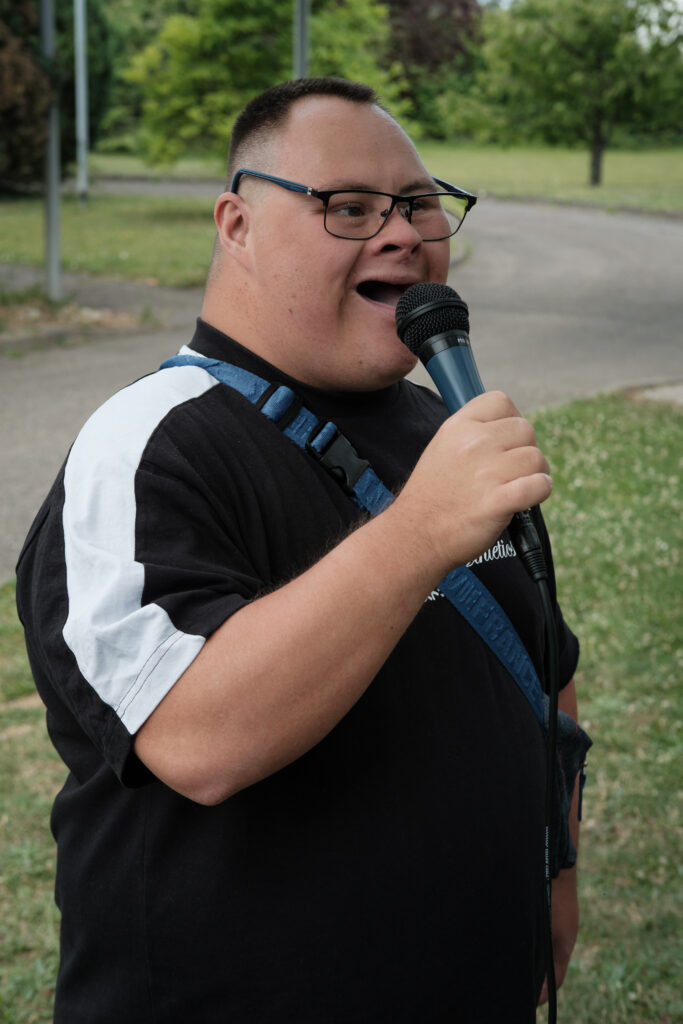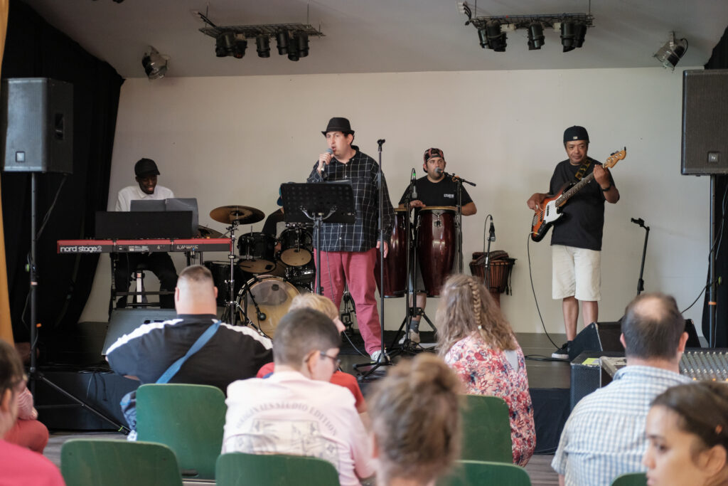 Mais la fête n’était pas terminée. L’après-midi, un moment fort de la journée s’est déroulé dans la salle de spectacle de l’établissement avec la venue de l’ESAT l’Évasion de Sélestat. Invités d’honneur de cette journée musicale, les artistes ont offert un concert vivant, dynamique et émouvant. Dans un décor festif, les résidents ont chanté, tapé des mains, dansé parfois, créant une véritable communion autour de la musique. Le groupe a interprété un répertoire varié, entraînant et parfaitement adapté à l’ambiance joyeuse de la journée.