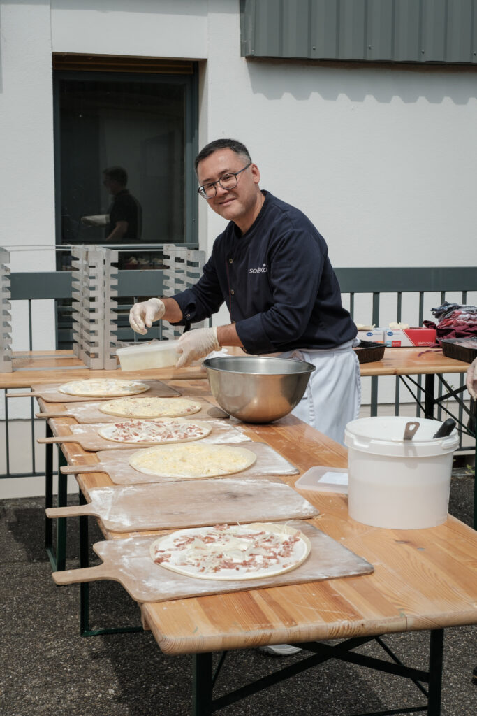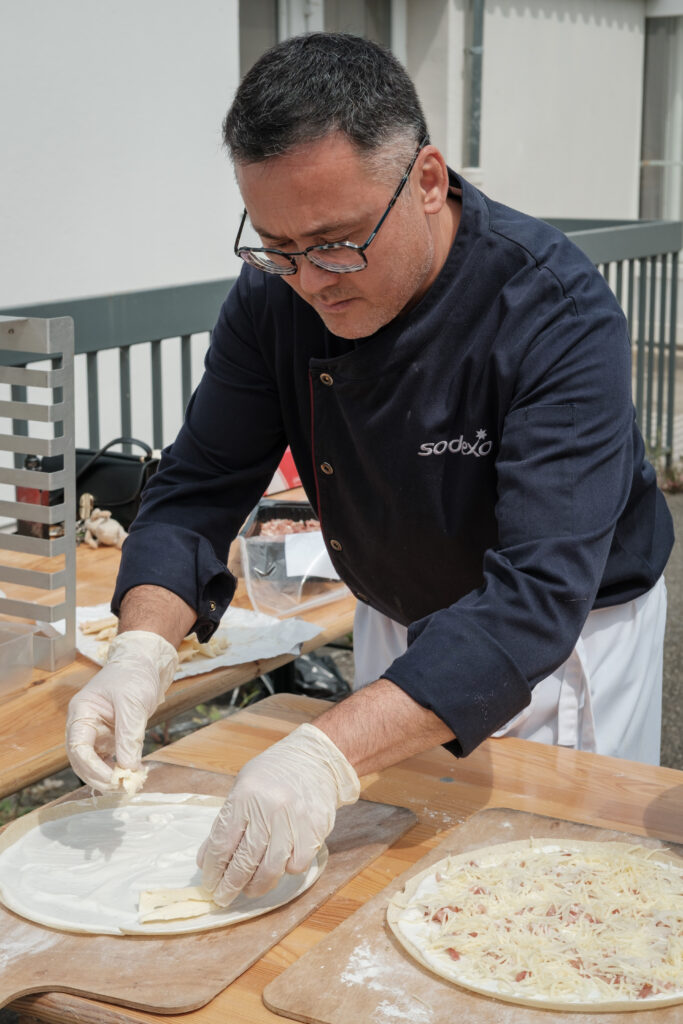 À midi, place à la gourmandise avec un repas préparé sur place par les équipes de l’AIPAHM et Sodexo. Des tartes flambées fraîchement cuites par nos chefs ont régalé les papilles des convives, accompagnées de salades et suivies de délicieuses brochettes de fruits en dessert. Convivialité, rires et discussions ont rythmé ce repas partagé, dans une atmosphère détendue et estivale.